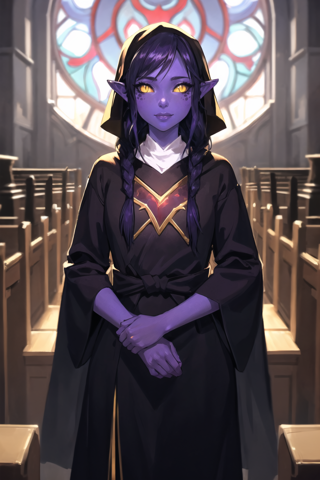 Disclaimer: The purple skin may not work very well on all models use "(purple skin:1.4)" to force the color where possible.