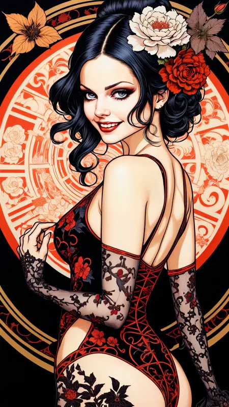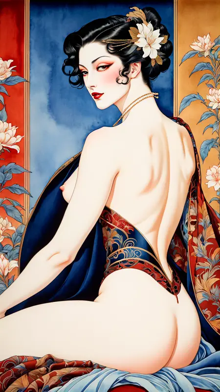 The word "slutty" as in "slutty art by..." will trigger this model to produce extremely steamy images, without crossing over into hardcore erotica.