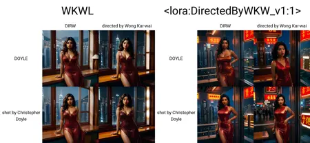 トリガー文は必須ではありませんが、「Christopher Doyle 撮影」や「王家衛 監督」といったプロンプトを追加すると効果的です。