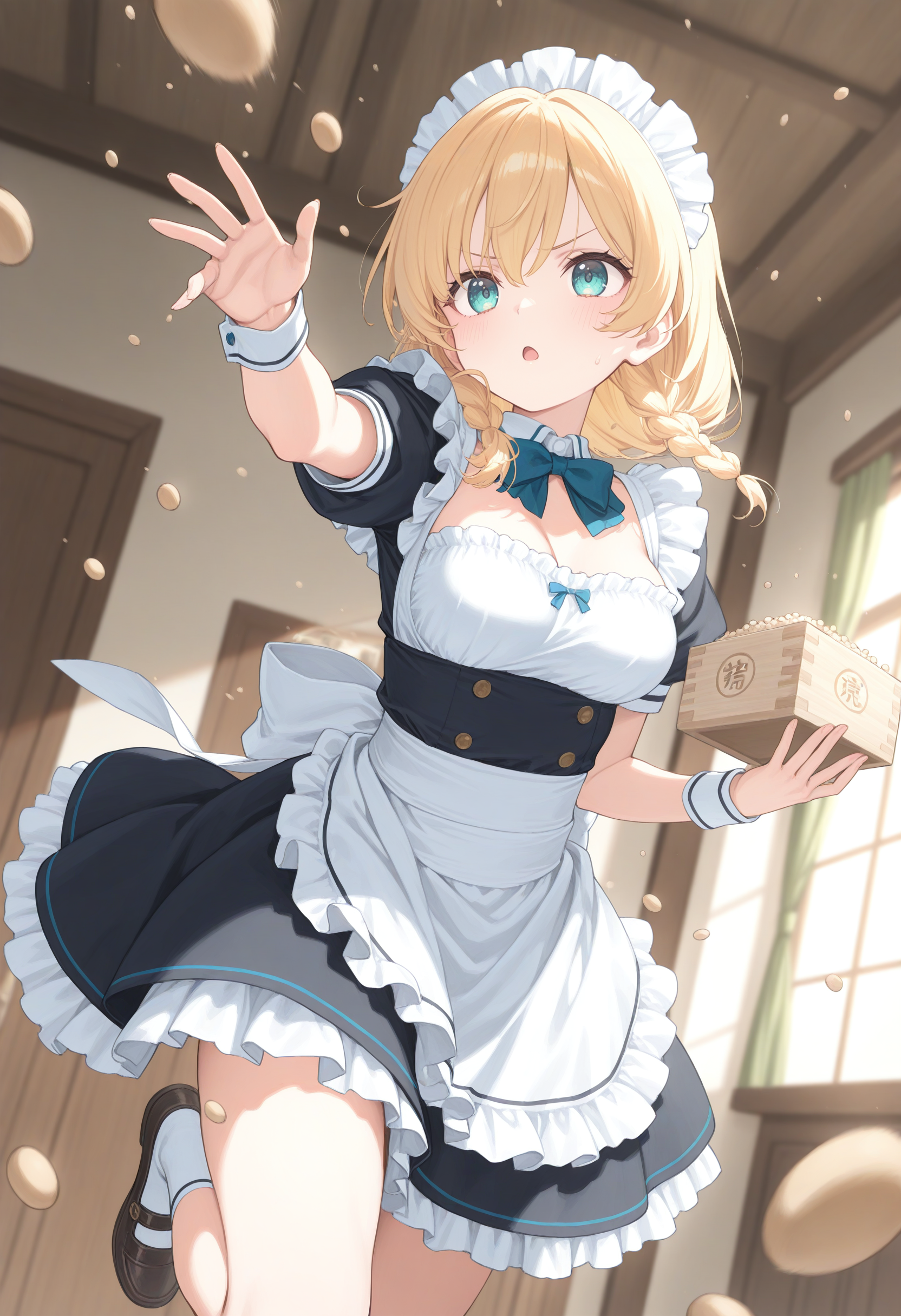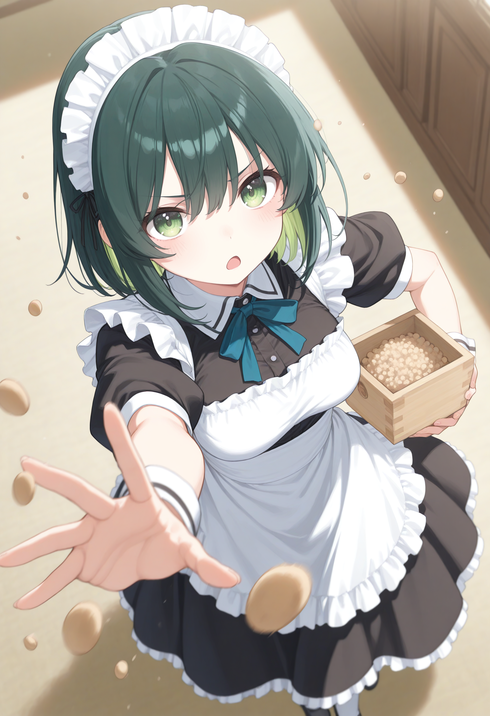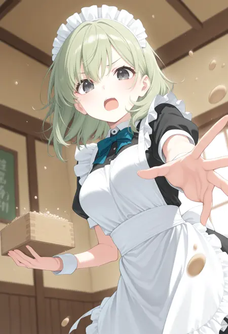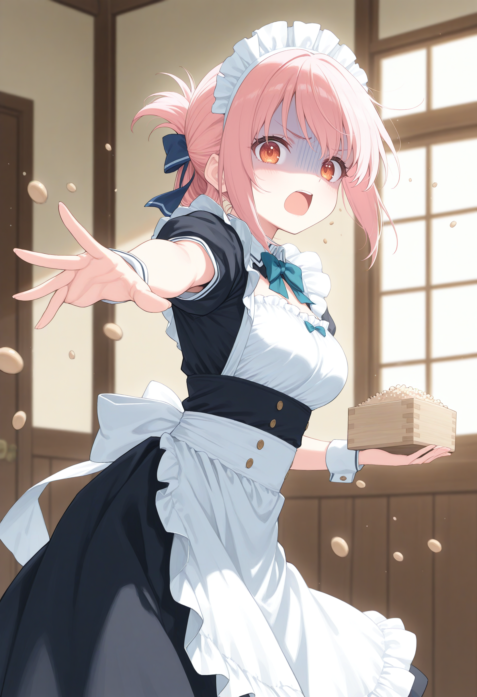 トリガーだけだと枡を手に持つだけなので豆を撒かせる場合は masu , setsubun,beans, throwing, open mouth, holding, indoors 辺りで補強して下さい。