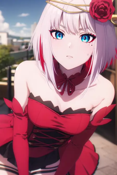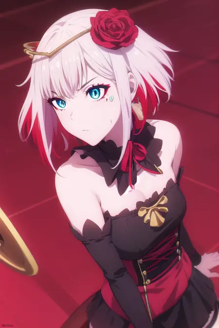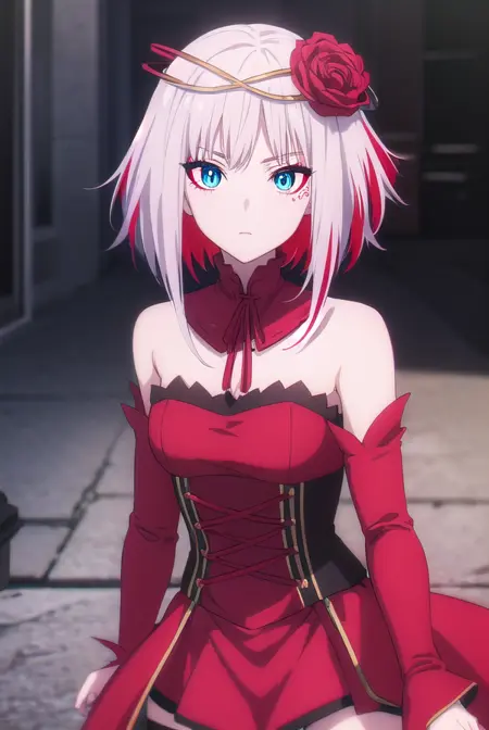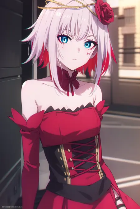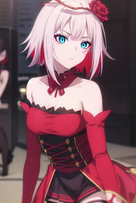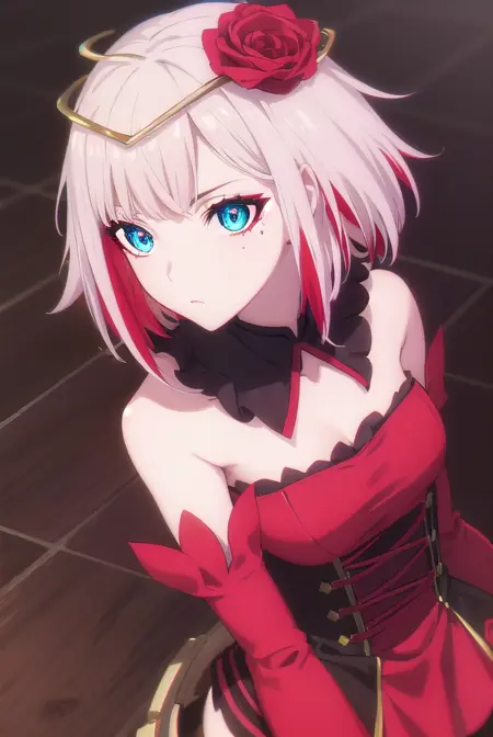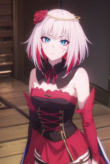 destiny,蓝眼睛,短发,发饰,花朵,白发,红发,多色发,发花,玫瑰,有色皮肤,面部标记,红花,红玫瑰,荆棘,