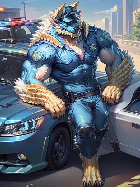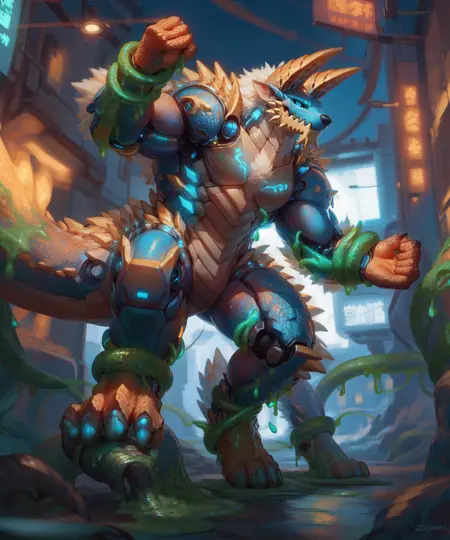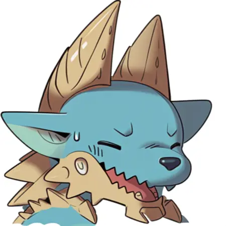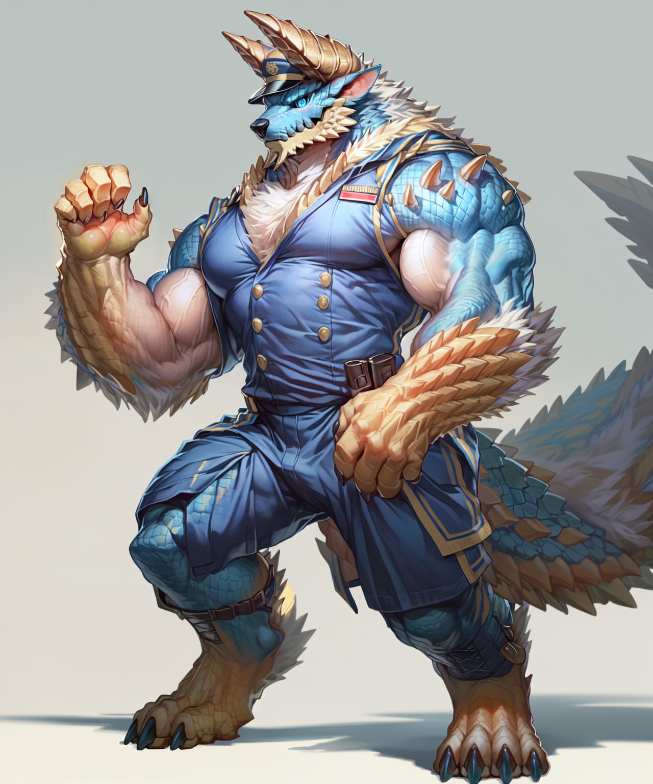 zingore,blue eyes, blue body, white furry, yellow hand, yellow feet,