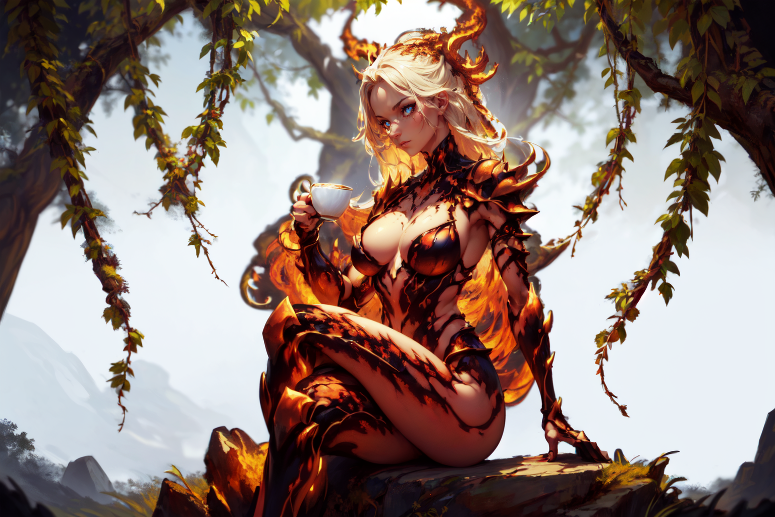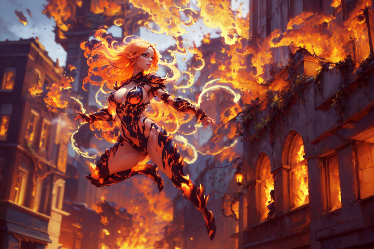 Extra Trigger : fire, glowing, plant, fiery hair, magic