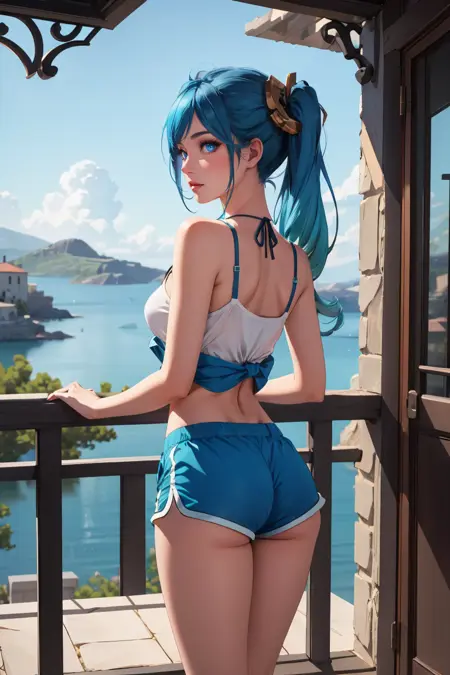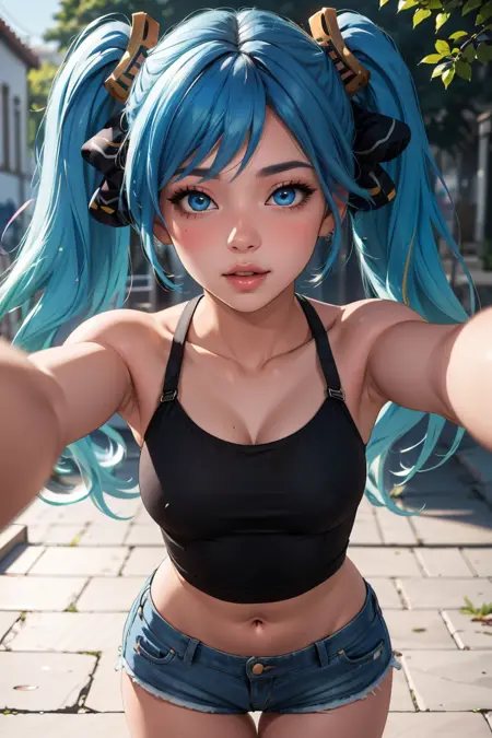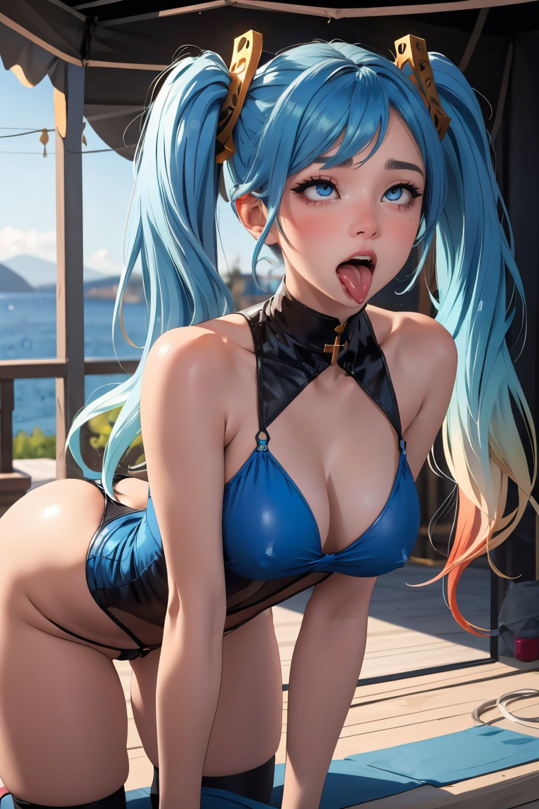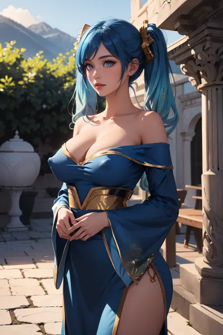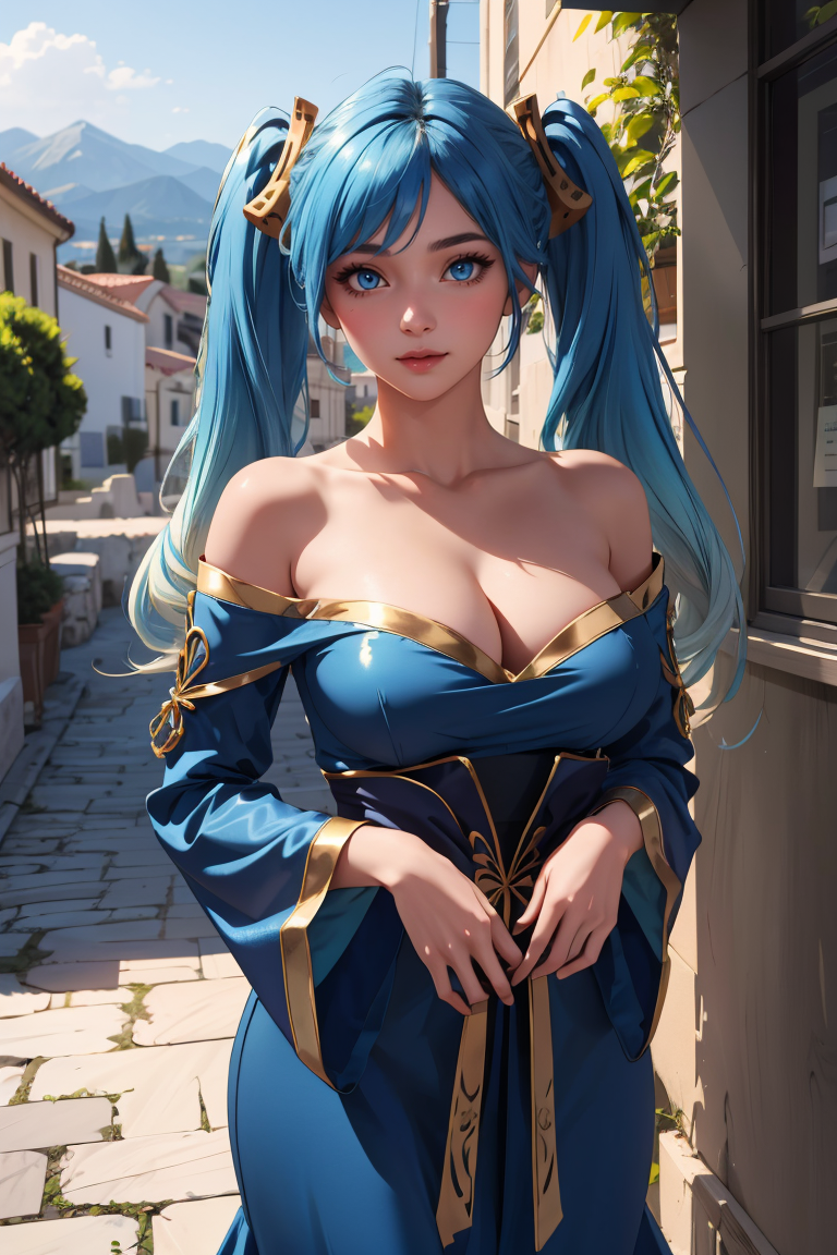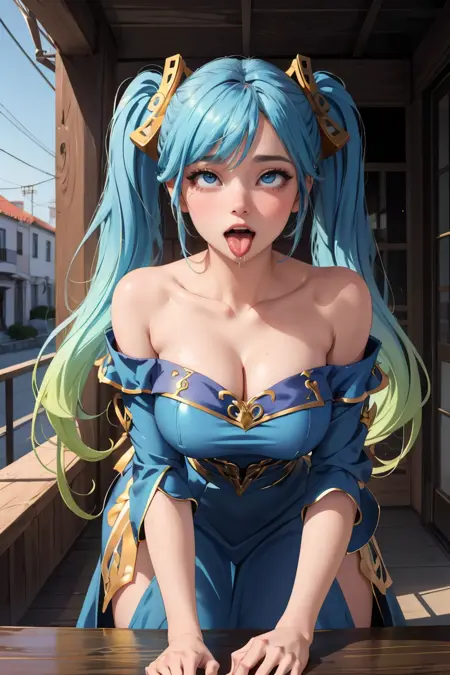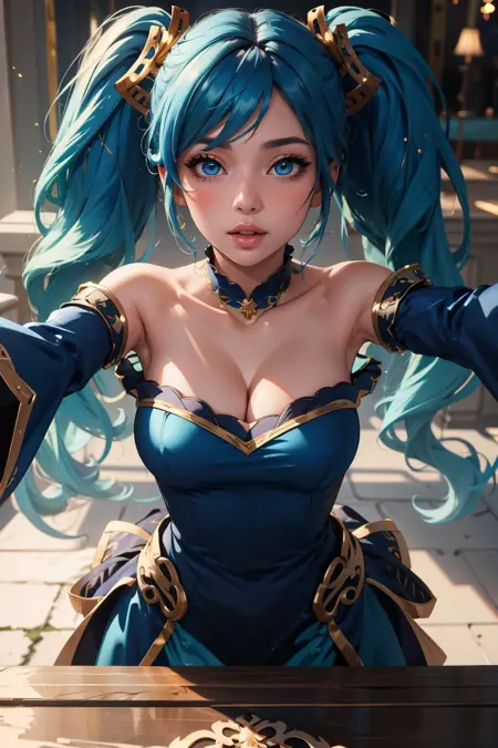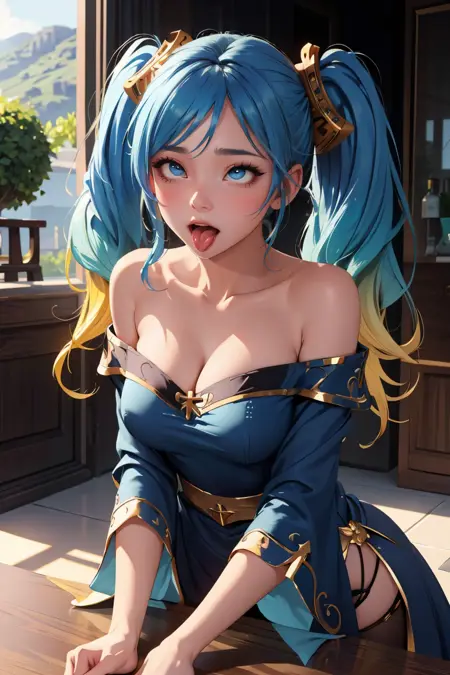 Activation words: sona, blue hair, blue eyes, gradient hair, twintails, hair ornament, long hair