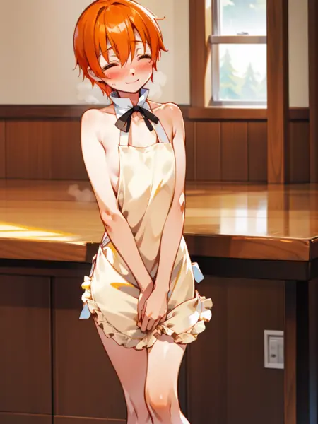 Inami Mahiru - mahiru, orange hair, short hair, orange eyes, skinny, flat chest