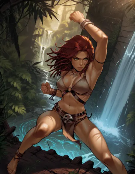 Yay! Another character I was able to make albeit with a very limited dataset of about 30+ images but she's still quite dynamic and fun. She's very wild and feral so I tried to capture that as much as I could. Look below for prompting tips and extra prompts as well: