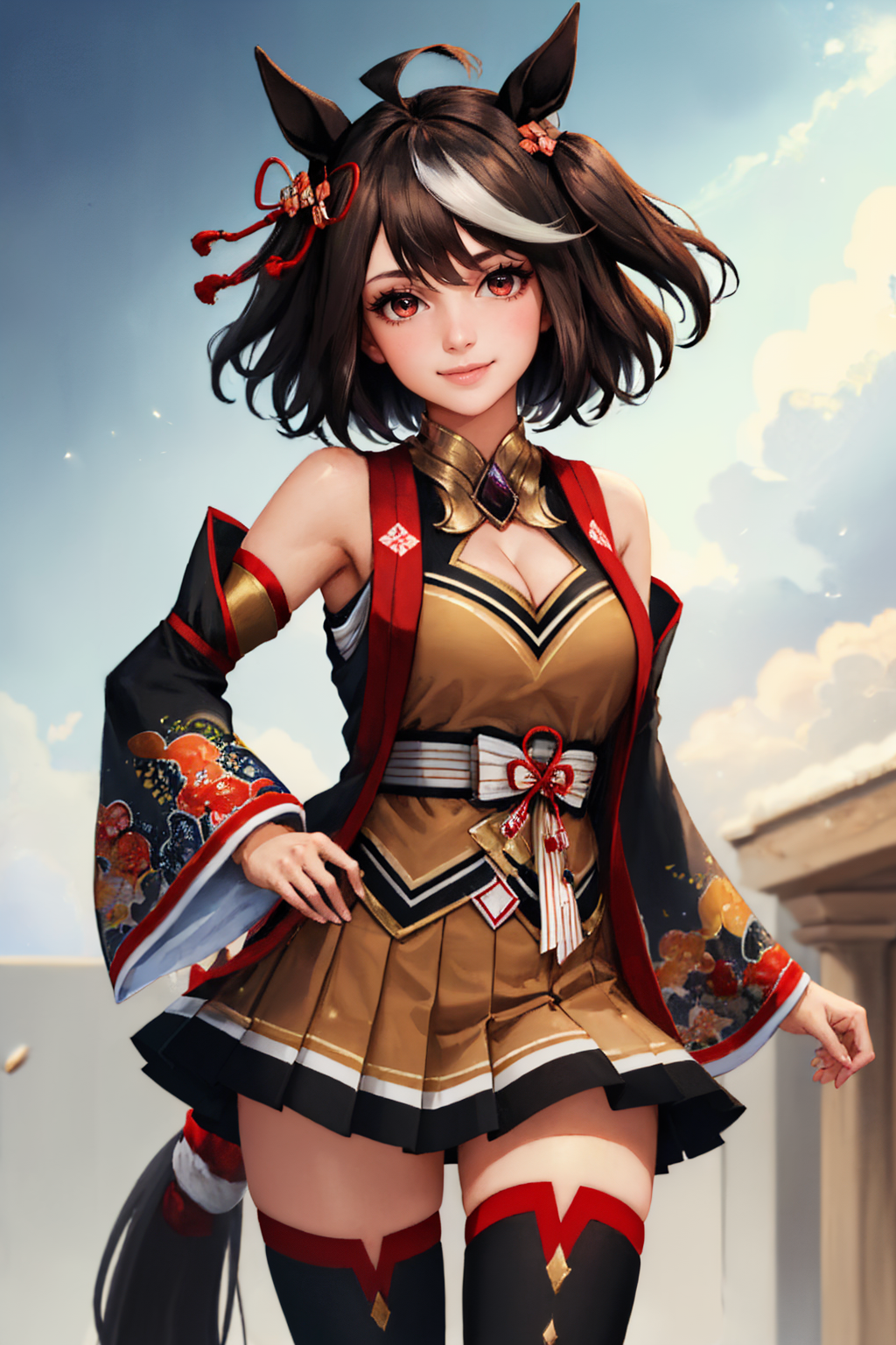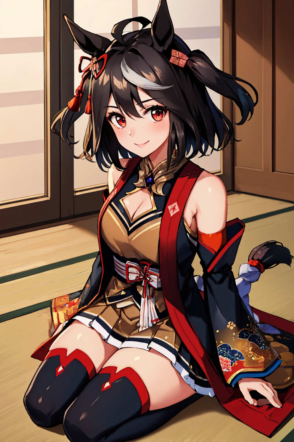 Trigger + Appearance: kitasanblack, ahoge, hair ornament, horse ears, horse tail
