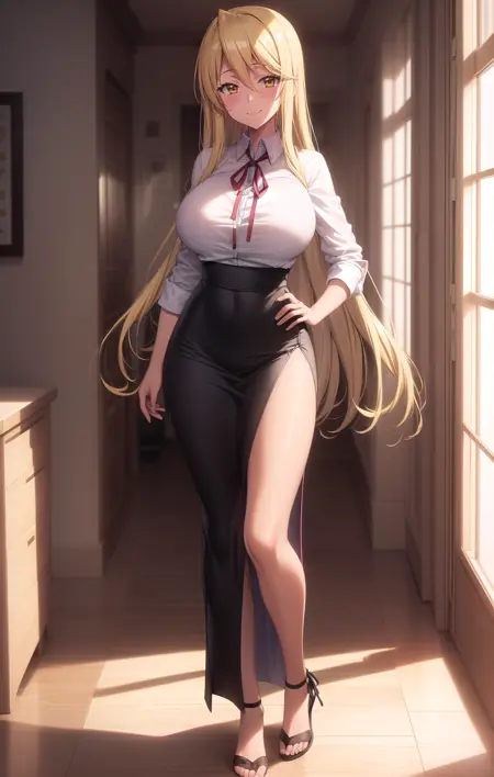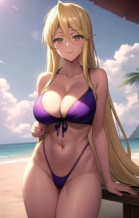 marikawa_shizuka_: 髪型は 金髪、ロングヘア、サイドロック、大きな胸 ,そして 茶色い目 と組み合わせてキャラクタの外見を再現できます。