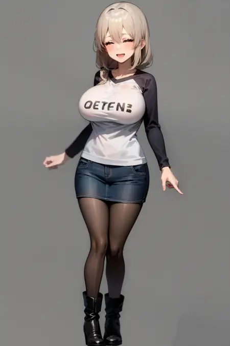 기본 옷 프롬프트: 파란색 오픈 카디건, 갈색 치마, 셔츠