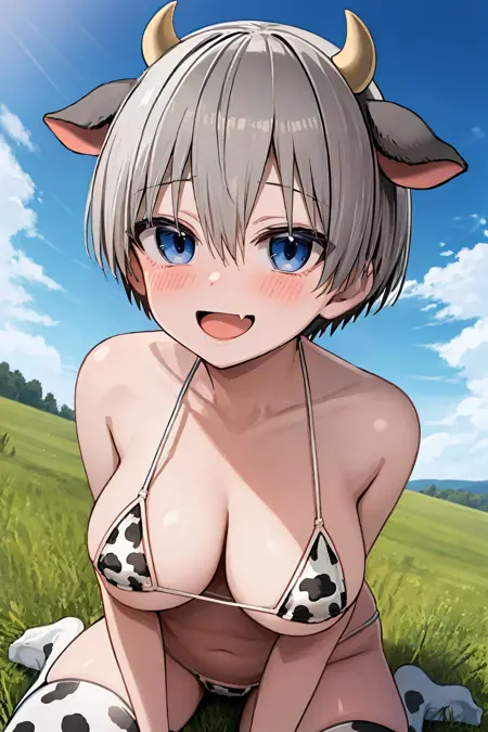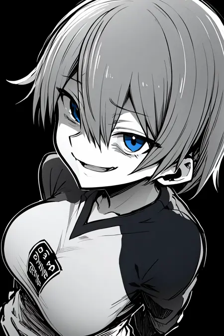 기본 프롬프트: 1girl, grey hair, short hair, hair between eyes, bangs, blue eyes, skin fang