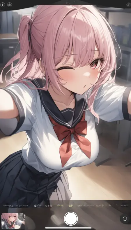スマホのインカメラで自撮りしている画面のLoRAです。