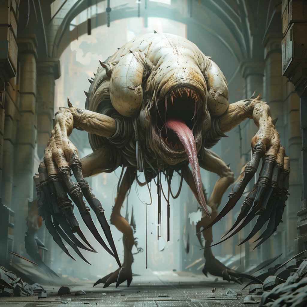 Eekloks是邪恶的异形生物,栖息于连接多个世界的恐怖空间中。当被某种邪恶的赞助者引入物质维度时,它们主要出现在最深的洞穴和地牢中,通常在冒险者穿越到另一个世界之前。它们能以极快的速度穿行于大多数物质中,随后通过伸出舌头将猎物拉入其巨口进行攻击。它们拥有众多爪子,数量从6到20或更多,用于攻击附近的敌人;同时,它们还能释放一道能量束,以伤害远处的目标。