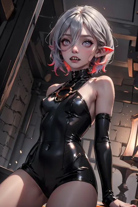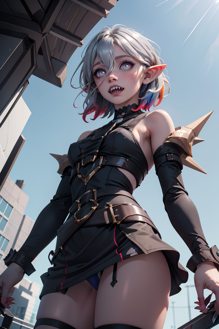 Activation words: briar, hair between eyes, fingernails, sharp teeth, short hair, grey skin, colored skin, multicolored hair, silver eyes, pointy ears