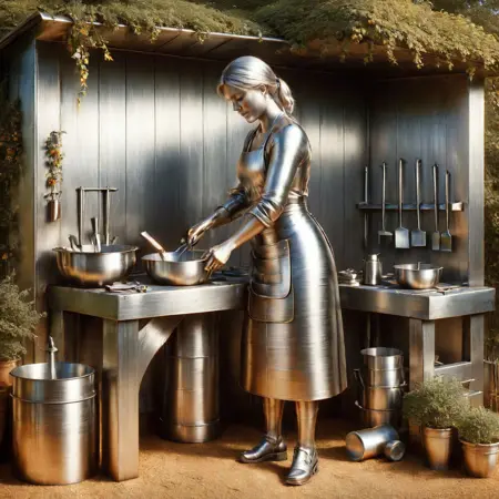 短提示会生成简单的金属物体。较长提示会产生更有趣的结果。非常长的提示通常只会部分金属化。建议从提示开头放置触发词,必要时向右移动。你也可以尝试调整触发词权重;0.8 到 1.2 应该都合适。