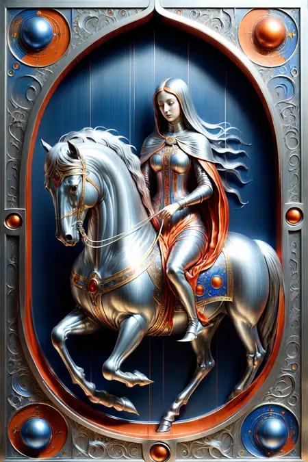 长提示通常会使主体部分金属化——可能是整体转化,也可能是衣物或图像周围的各种物品。