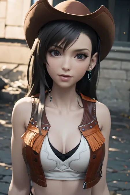 Prompts: Cowgirl Tifa/Cowgirl Tifa close up/Cowgirl Tifa half body/Cowgirl Tifa full body. The cowgirl costume is part of the dataset by default.