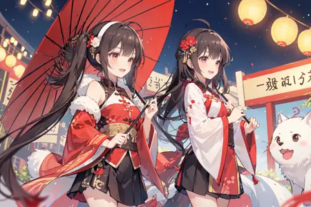 To match the festive atmosphere, I trained this model with various elements related to Chinese New Year, such as red lanterns, fireworks, and cheongsams. The training dataset mainly consists of New Year greetings from various games. I hope you will enjoy it.