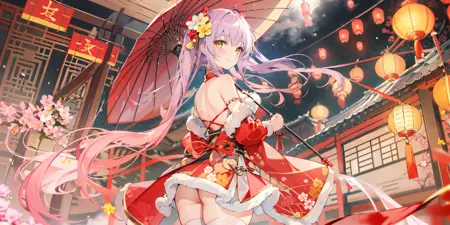 为了应景而训练了这个模型,主要就是一些中国新年的元素,例如红灯笼啊,烟花啊,旗袍啊之类的,主要是用各种游戏的一些新年贺图作为训练集,希望大家能够喜欢。