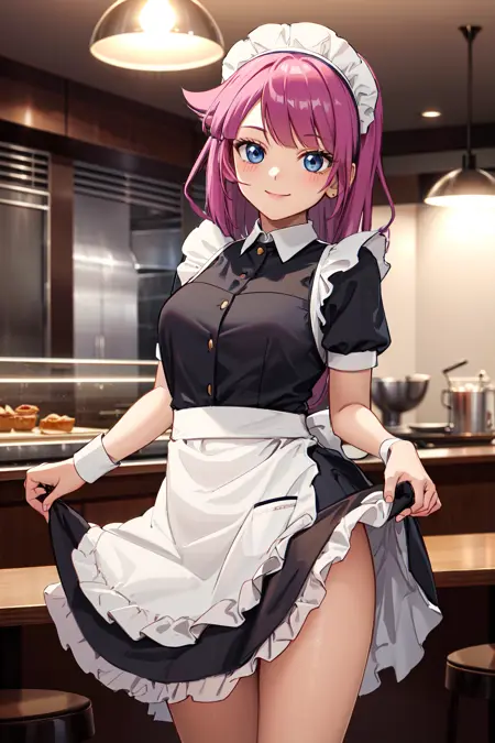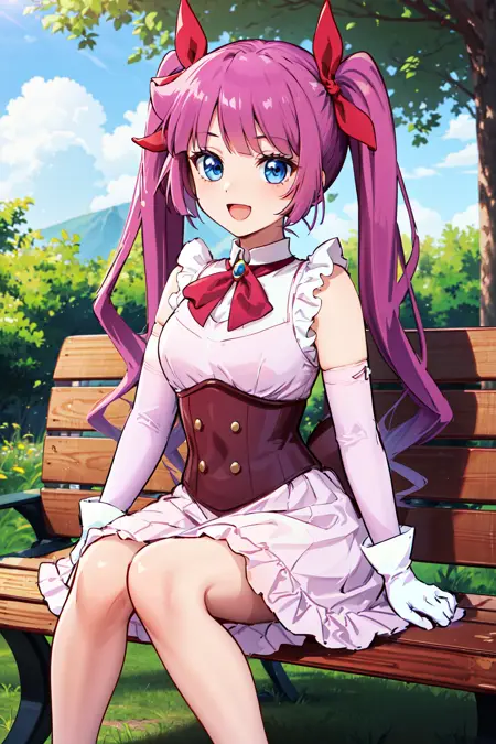 - ccromin,long hair,twintails,bangs,magical girl,pink dress,sleeveless,elbow gloves,white gloves,corset,ribbon,skirt,pantyhose,socks,high heels