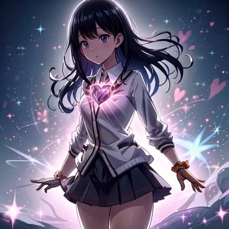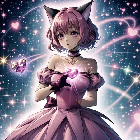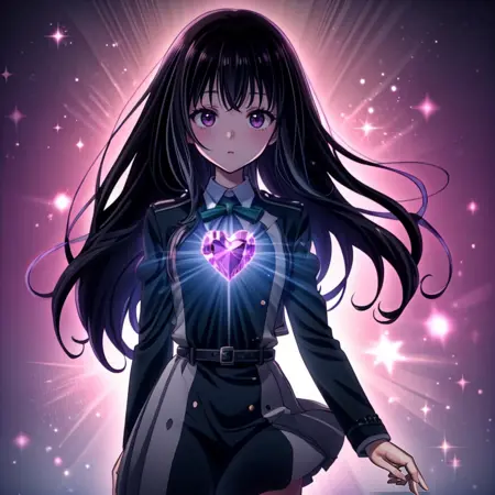 I created a LoRa with a heart-shaped jewel on its chest. No main color specification was given, but I created a LoRa with it by generating a large number of images of a heart-shaped jewel on the chest.
