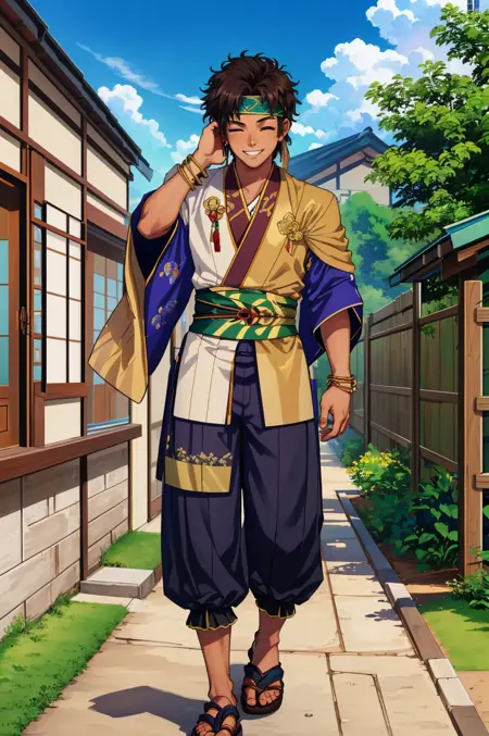 More helpful prompts: pants, sash, earrings