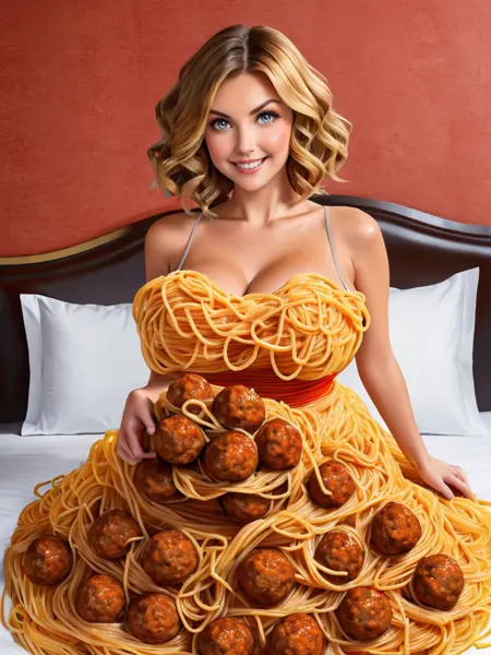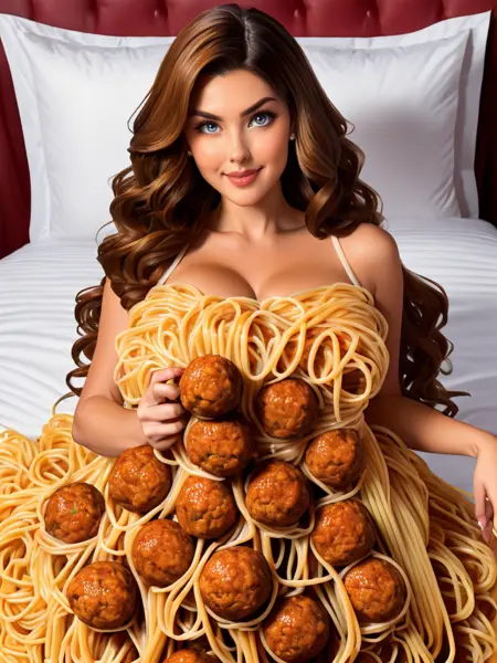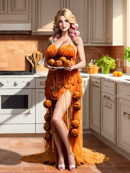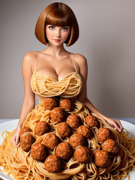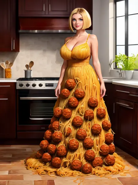 关键词:sp4gh3tt1_dr3ss,由意大利面和肉丸制成的连衣裙 + 手持肉丸(如果你想让她拿着你的肉丸)