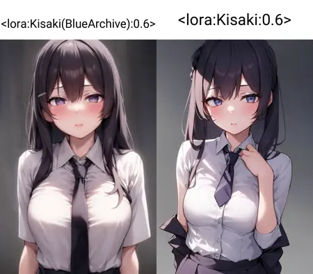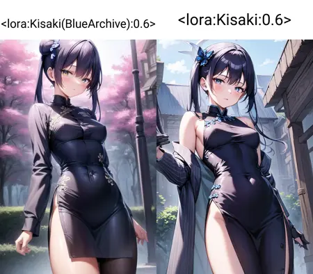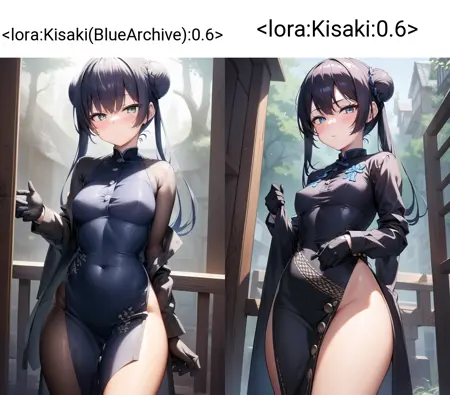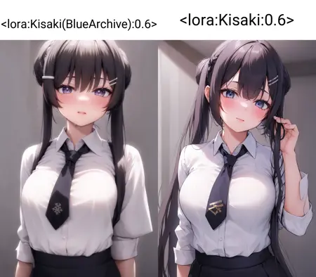 최상의 결과를 위해서는 0.4에서 0.8 사이의 값을 사용하세요. 0.9로 설정하면 신체 부분이 훨씬 더 나빠지고 아티팩트가 나타날 수 있습니다. 프롬프트에 "Kisaki"를 사용하세요, 아니면 그녀가 금발이 될 수 있습니다.