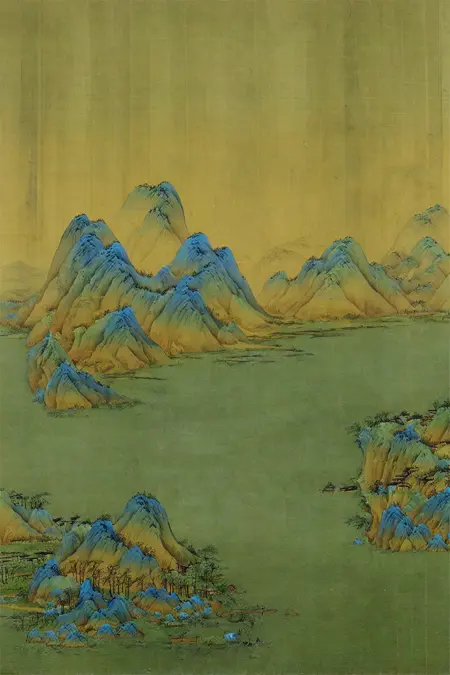 The Qinglu Shanshui (Green-and-Blue Landscape) painting is a distinct style in Chinese painting, known for its vivid green tones and fresh landscape scenes. This style originated in the Tang Dynasty and reached its peak during the Song Dynasty. It emphasizes the use of ink lines to outline the contours of mountains and waters, combined with the application of elegant green and blue colors to render the scenes, showcasing the freshness, tranquility, and harmony of nature. The Green-and-Blue Landscape painting is not just a representation of natural beauty but also embodies the painter's understanding of the universe and the expression of their inner world.