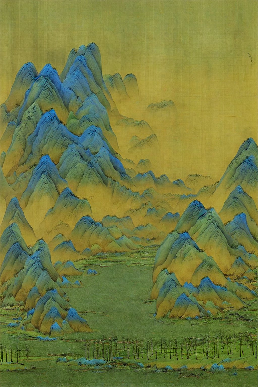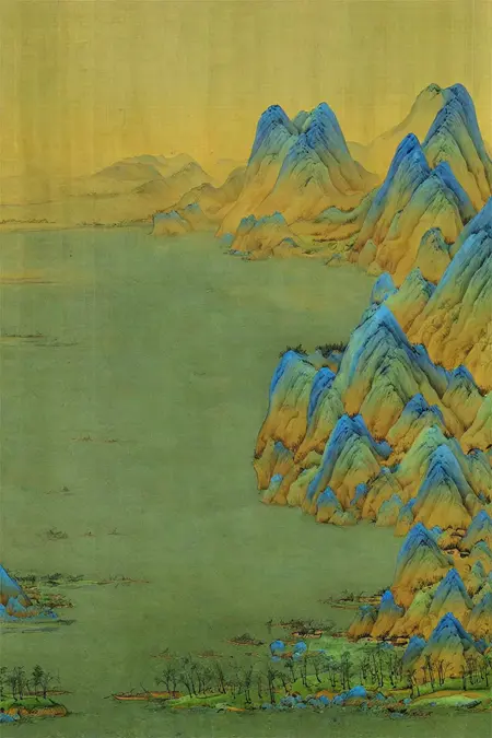 Wang Ximeng is a renowned Green-and-Blue Landscape painter from the Northern Song Dynasty, best known for his masterpiece "A Thousand Li of Rivers and Mountains." This work captures the essence of Chinese landscape painting with its fine lines and distinct layers of green and blue colors, depicting magnificent mountainous landscapes filled with poetic imagination and grand visions. Wang Ximeng inherited traditional techniques while innovating in his detailed depiction of scenes and masterful use of colors, making his work a classic example of Chinese landscape art that is still admired today. Although Wang Ximeng produced a limited number of works, his contributions and influence on landscape painting are profound, marking him as an indispensable figure in the history of Chinese art.