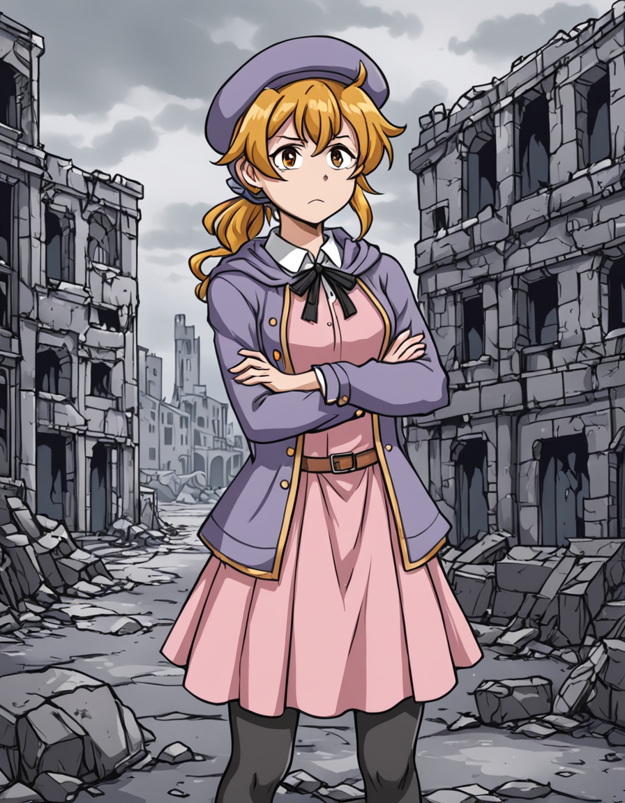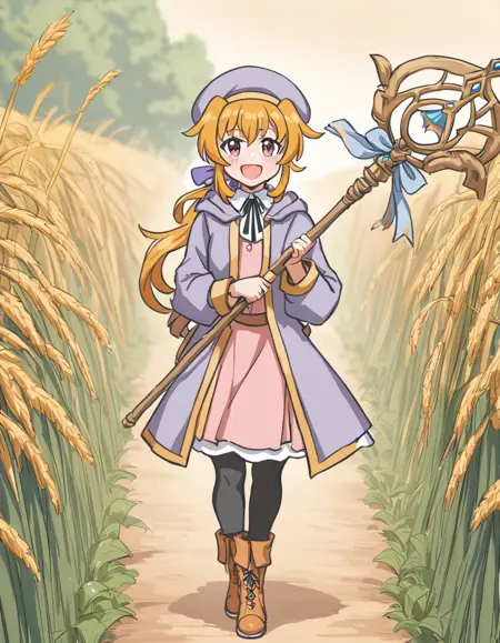 XL Lora of Eleanor, a creation of BaconSketches . Trigger phrase is "Eleanor". For her default outfit the prompt set "pink dress,purple jacket,hat,beret,ribbon,ponytail,neck ribbon,black pantyhose,boots" is recommended. "Brown eyes" may be useful if the model doesn't make them consistently.