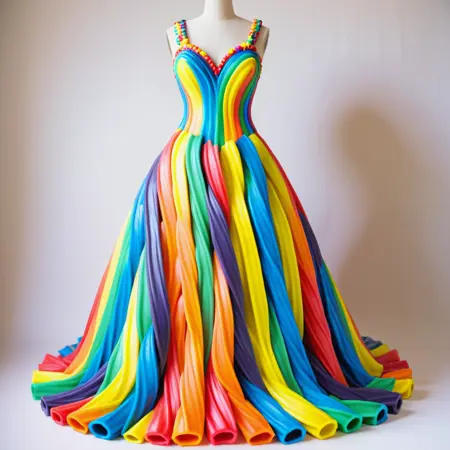 See examples, just say x made of rainbow licorice, black licorice, whatever licorice, it doesn't really care.