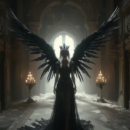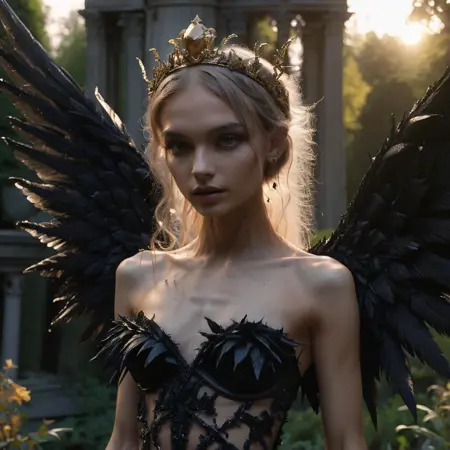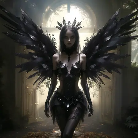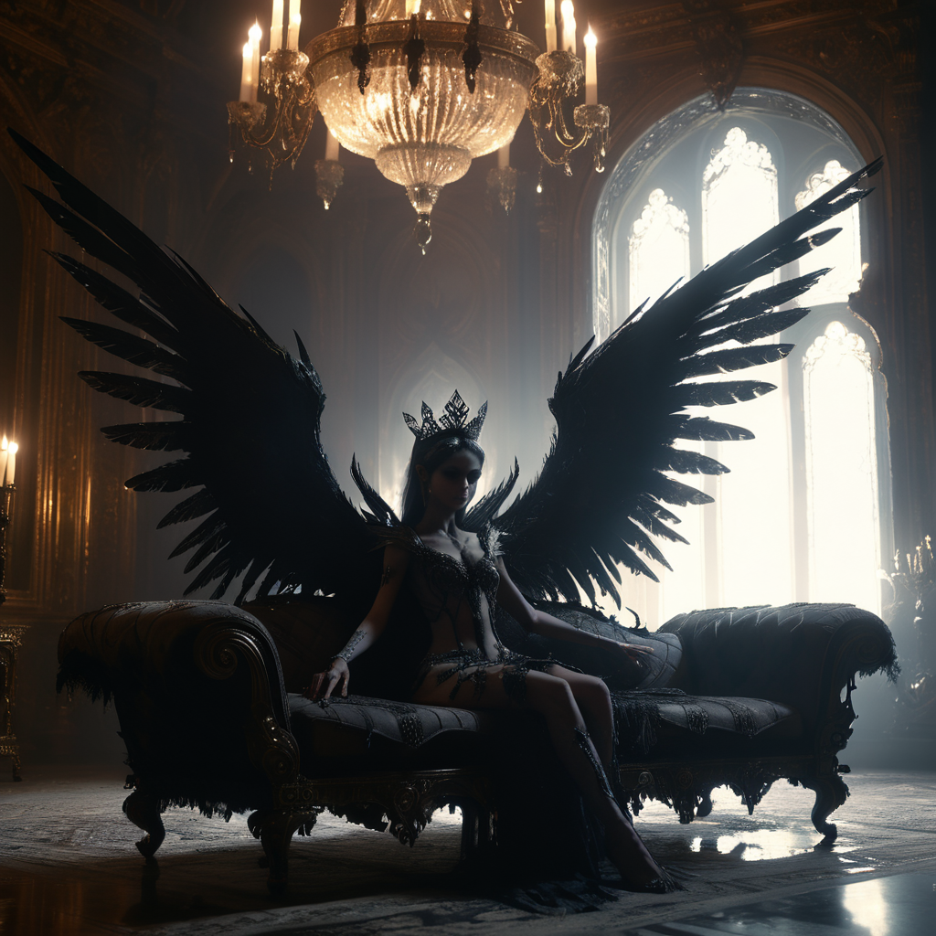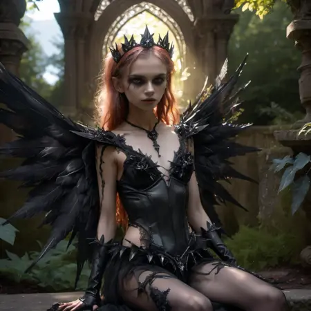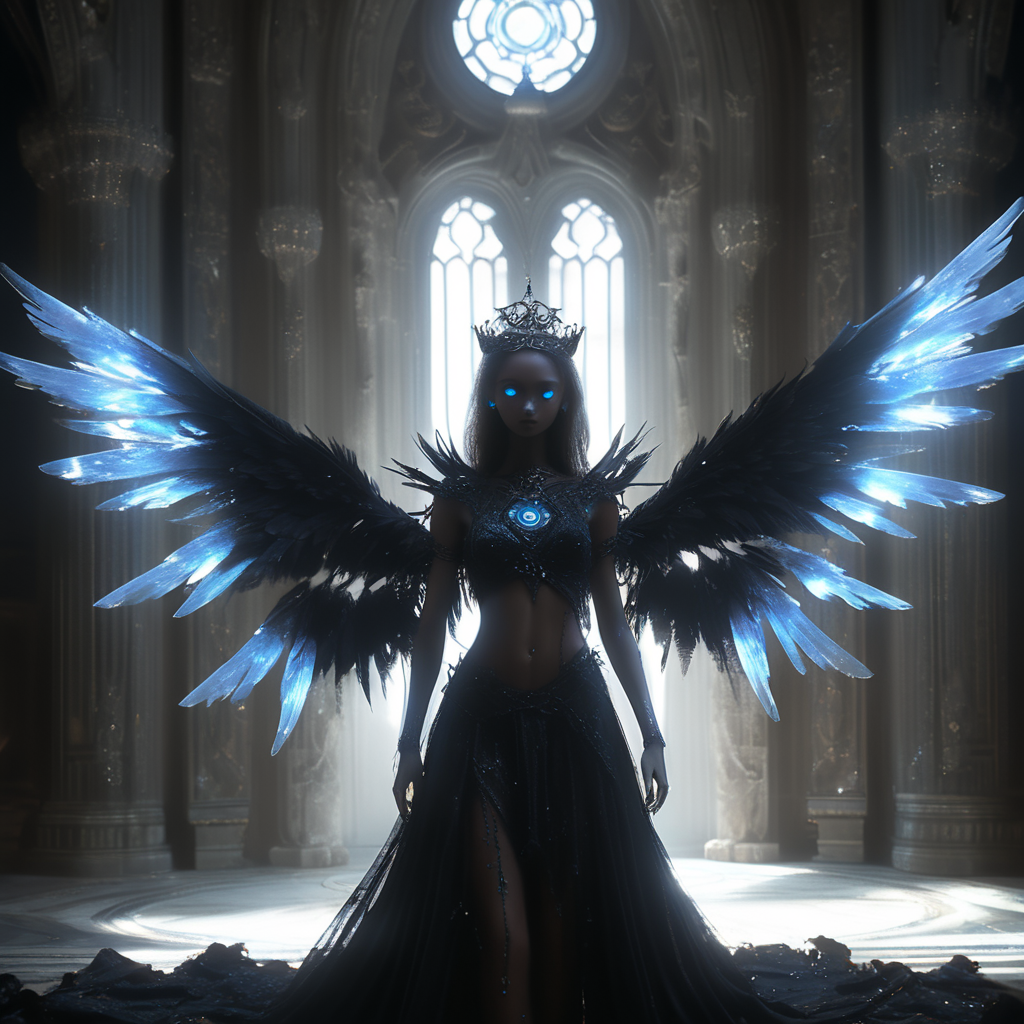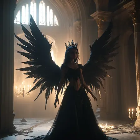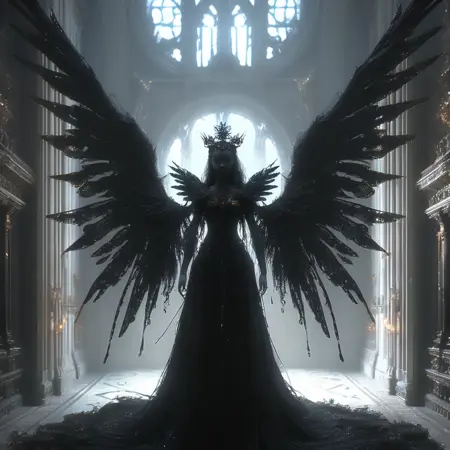1girl, absurdly long hair, akthahtka, angel wings, antlers, arm support, arm tattoo, armor, arms at sides, backlighting, bare shoulders, belt, black bra, black choker, black dress, black eyes, black feathers, black gloves, black hair, black leotard, black lips, black nails, black panties, black skirt, black thighhighs, black wings, blonde hair, blood, blue eyes, blurry, blurry background, boots, bottomless, bra, braid, breasts, brown eyes, brown hair, bustier, cape, choker, church, cleavage, closed eyes, closed mouth, collarbone, colored skin, corset, covering, covering breasts, crop top, cross, crossed legs, crown, dark, day, dress, earrings, elbow gloves, facial mark, facing viewer, feather trim, feathered wings, feathers, fingerless gloves, fishnets, flame, from side, full body, garter belt, garter straps, gloves, gothic, grey eyes, grey skin, hair between eyes, hair bun, hair ornament, hair over one eye, halo, hand on own chest, hand on own knee, high heels, horns, indoors, jewelry, knee up, lace, lace trim, lace-trimmed legwear, latex, leather, leotard, lingerie, lips, lipstick, long hair, looking at viewer, lying, makeup, mask, medium breasts, midriff, miniskirt, mole, navel, necklace, nipples, no panties, nose, on back, on floor, one eye closed, own hands together, pale skin, panties, pantyhose, parted lips, piercing, pillar, pillow, pleated skirt, pointy ears, realistic, red lips, short hair, short shorts, shorts, sitting, skirt, sleeveless, small breasts, smile, socks, solo, spread legs, stairs, standing, strapless, strapless dress, sword, tank top, tattoo, thigh boots, thighhighs, tiara, torn clothes, tube top, underwear, very long hair, weapon, white eyes, white hair, window, wings,