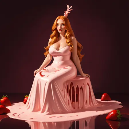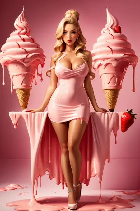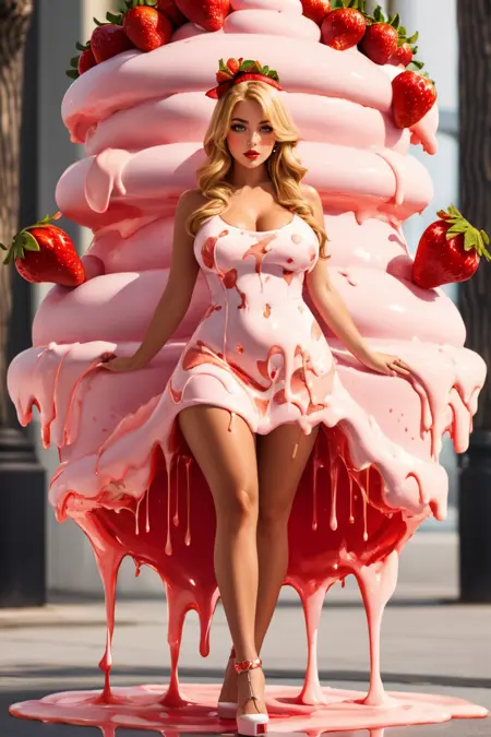 Keywords: cr34m_dr3ss, dress made of melting strawberry ice cream, dripping