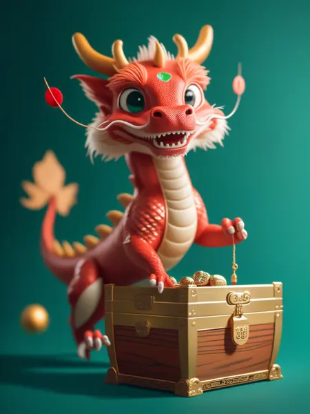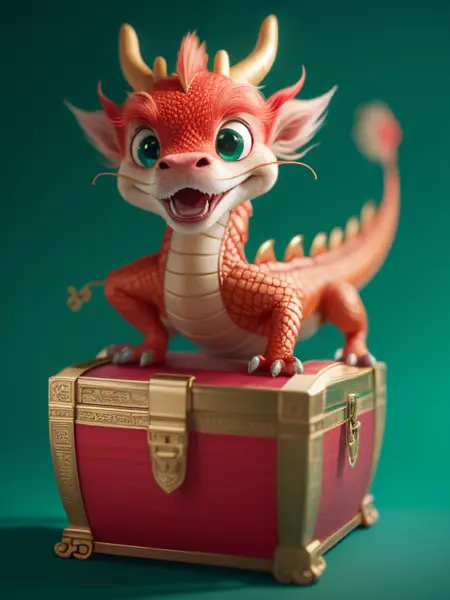 例如: master piece, high quality, a cute Chinese dragon, grab a gold coin, pink and golden background, J_dragon