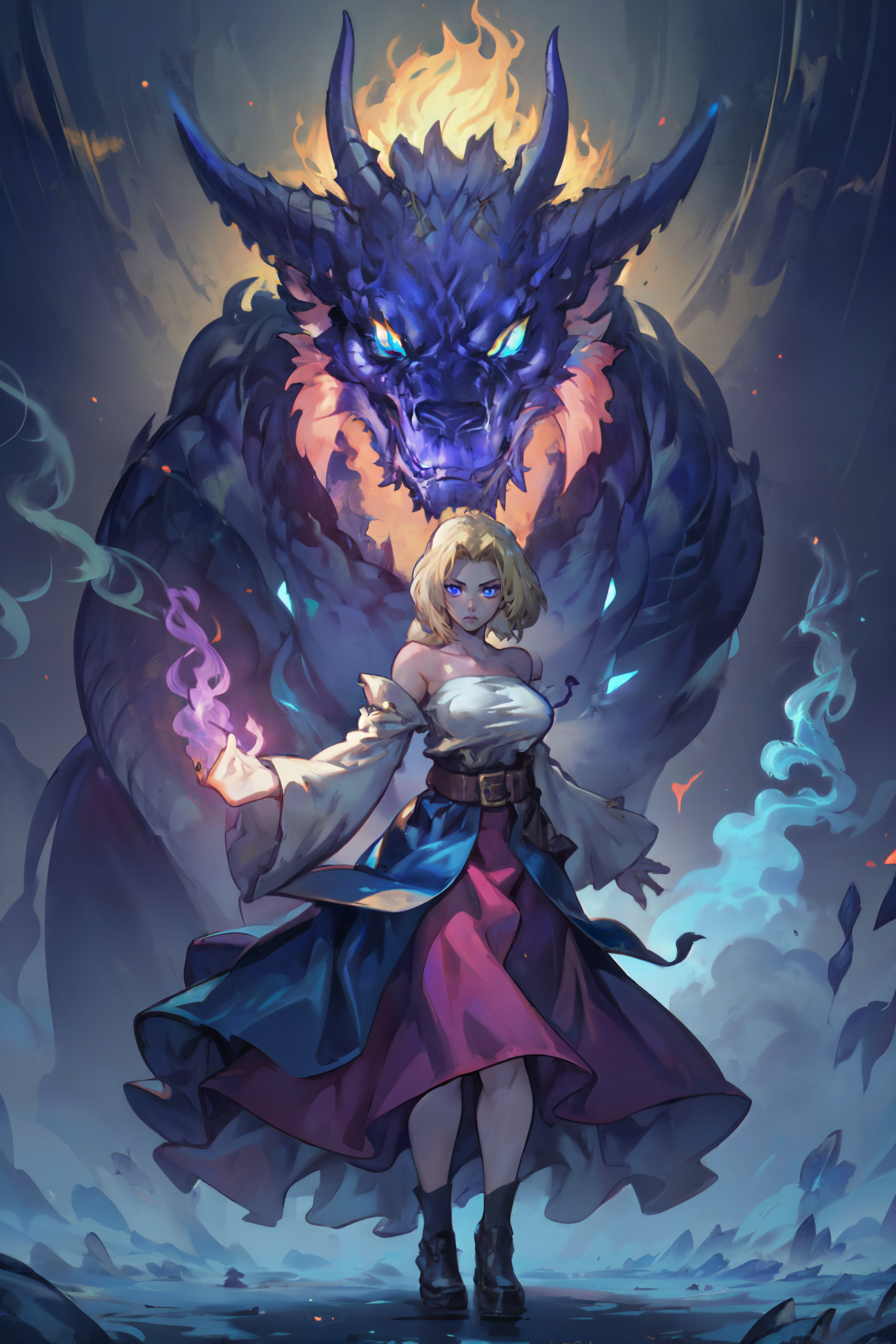 This is way more complicated than I anticipated going in and that skirt was a pain to get right until I finally learned of the overskirt booru tag. Also, some checkpoints tend to generate the skirt rather short, hence the higher priority in the prompt. Still, in the end it still turned out all right, I think.
