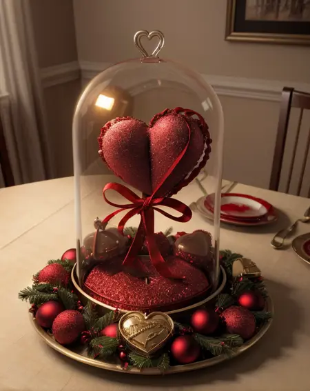 breathtaking , best quality, masterpiece, lora:quiron\_valentinesDay\_v1\_lora:0.87 ValentinesDayQuiron, autumn, box, close-up, english text, flower, food, gradient background, heart, realistic, red flower, rose, tree, valentinesday, hearts theme,valentines day style, love, colorfull, A miniature tabletop a pleasant christmas time canada landscape, snow, trees, christmas shop, glowing under an ornate glass dome, by paulette tavormina and michael whelan and donato giancola, inside a dusty abandoned laboratory, hyper realistic, extremely detailed, dramatic lighting, victorian, unreal engine, featured on artstation, octane rendar., fog, lighting, . award-winning, professional, highly detailed