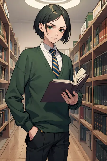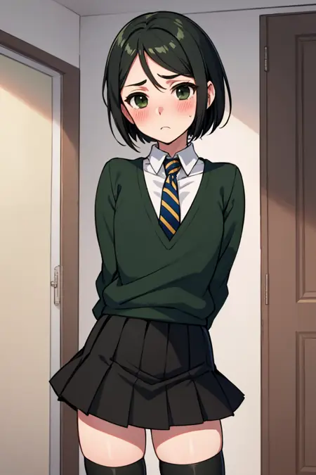 Default Outfit: green sweater, necktie, pants