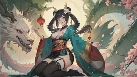 Recommended prompt:dragon horn,eastern dragon,chinese clothing, japanese clothing,