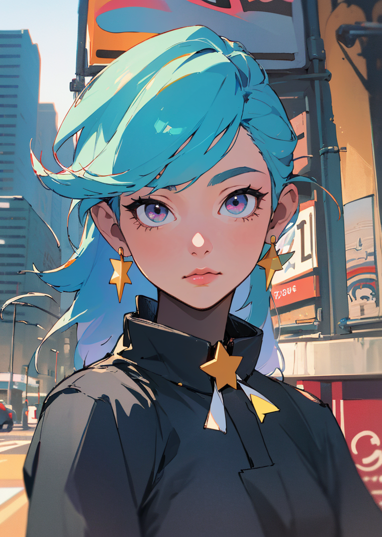 Inspired by secondary color palettes, fashion poses, retro clothing, cinematic lighting and cyberpunk backgrounds