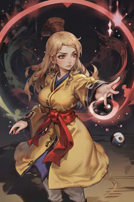 The generic Mystic/Oracle job from Final Fantasy Tactics. As usual, it also works like a costume lora since very little is baked into the main activation tag. This is probably the worst of the job models so far and I'll see if I can improve it with a v2 in the future. Very small dataset for this one, so it resulted in a few hang-ups. Sometimes colors will 'bleed' into into other areas of her costume and it mau require some cherry-picking to get it right. Also, I'll be using mostly the WoTL job names for these, but I'll try to include the original names in the description as well.