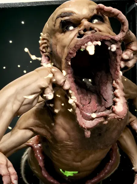 I'm surprised how he turned out so well lol, all you really have are really blurry and glitchy images from Chris Cunningham's (Aphex Twin) 2005 music video, but here he is clear as day lol! Well.. clear as I could get him. Clip Skip 2 and strength whatever. He can also splat against the glass into a weird pile of mutant debris.