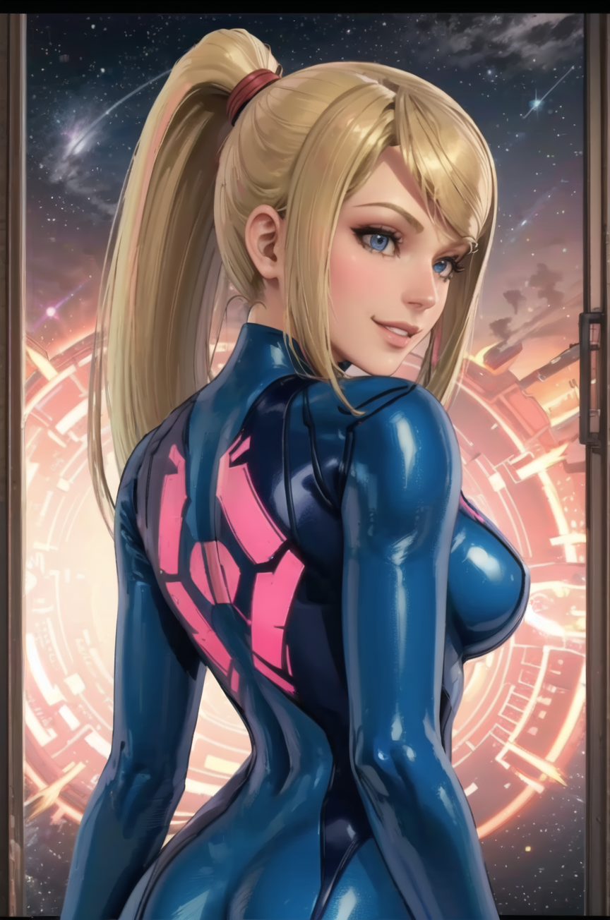 I've been meaning to do this for a bit. The objective of this Lora was to train it with SSB4 Samus look (the best one) and I think it mostly succeeds. There's a ton of bleeding when trying to use other outfits and you have to play with the weight to get other things to work, but the costume generation is pretty accurate and the general shape and details of her face work really nice. I'm happy with the results.