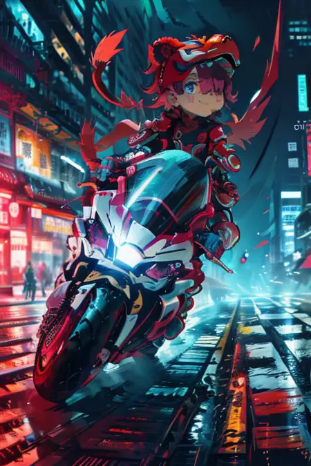 This lora. provides costumes and scenes, trigger words :xuer lion head,