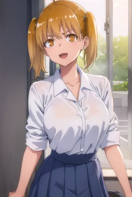yoshi, brown hair, twintails, (brown eyes:1.5), ahoge,