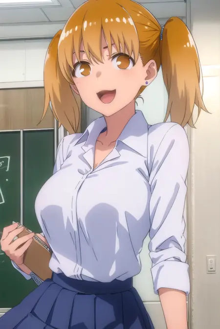 skirt, shirt, jewelry, school uniform, white shirt, pleated skirt, earrings, blue skirt,