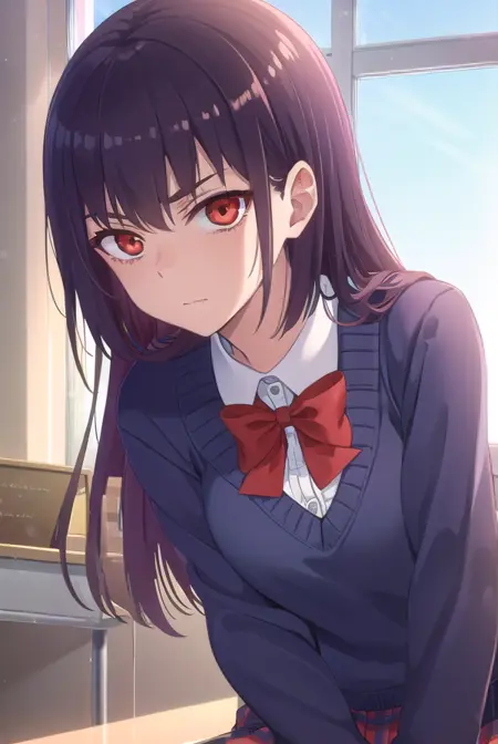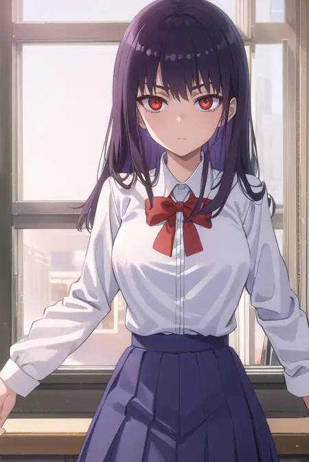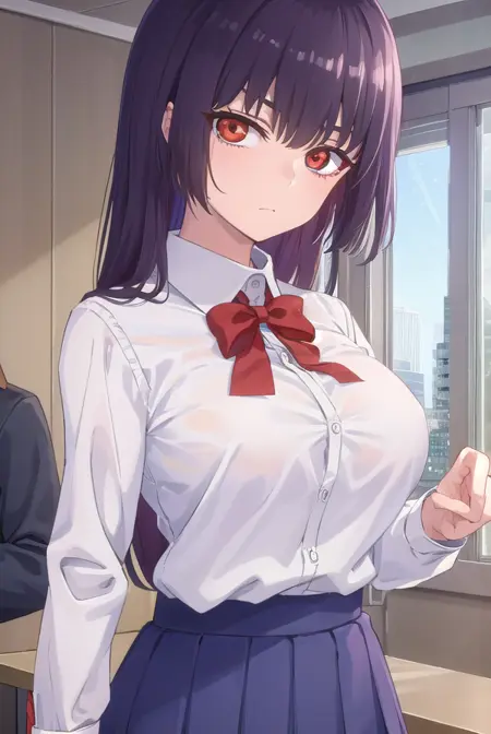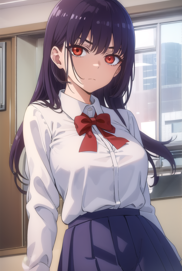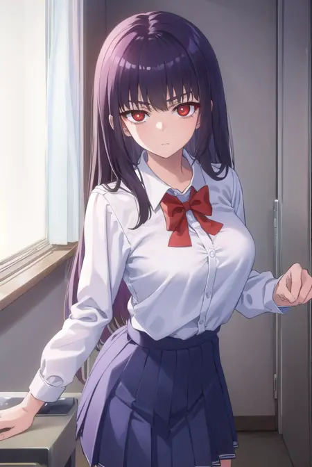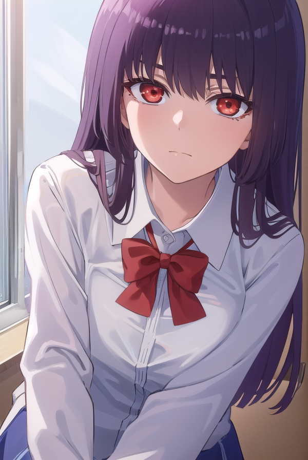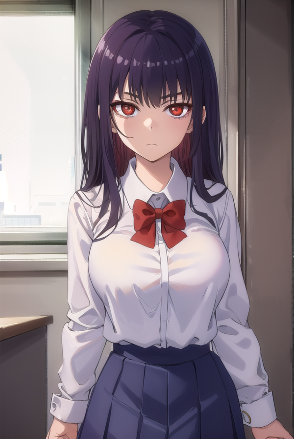 sana sunomiya, 긴 머리, 앞머리, 검은 머리, (빨간 눈:1.4), 히메컷, (고리 모양 눈:1.5),