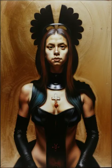 具象仪式、活的绘画、新哥特式祭坛画,这些都是萨图尔诺·布托汲取灵感的极其技术性的创作,用以描绘围绕着黑暗而阴郁宗教的迷人奥秘。在他的作品中,这种影响通过人体的感官性与其深层次精神性的并置得以体现。