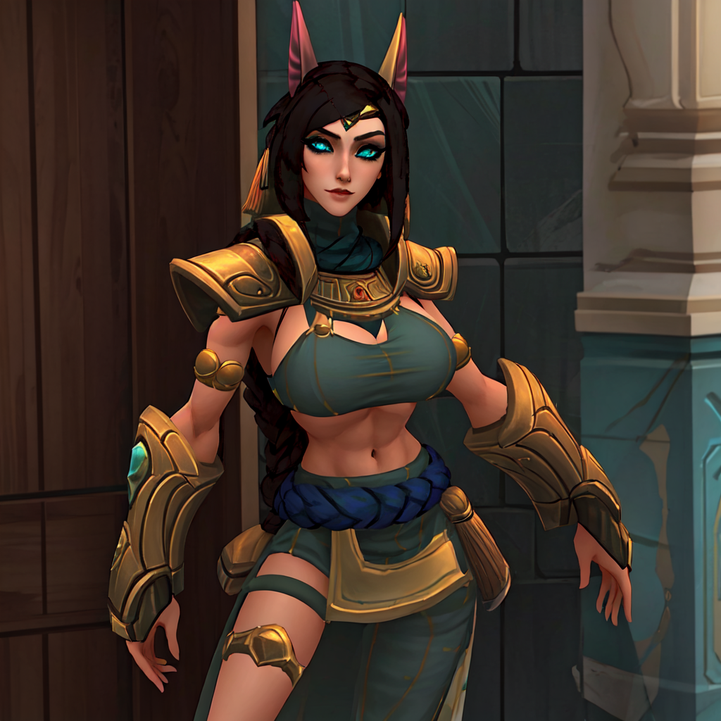 A LoRA mainly trained on abdomera's Nasus custom skin and a few photos of cosplays ((an experiment to fix a messed up face) so, if your model tries to pursue realism but you don't want that, put "realistic" into negative.