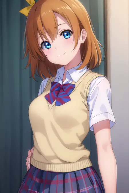 honoka kousaka,蓝眼睛,棕色头发,发带,橙色头发,(一侧向上:1.2),短发,黄色发带,