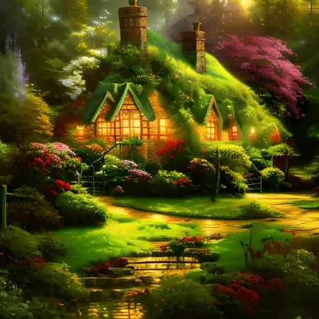 Vibrant light and color: Kinkade bathed his works in bright lighting and used bright colors to create a cheerful and optimistic atmosphere.